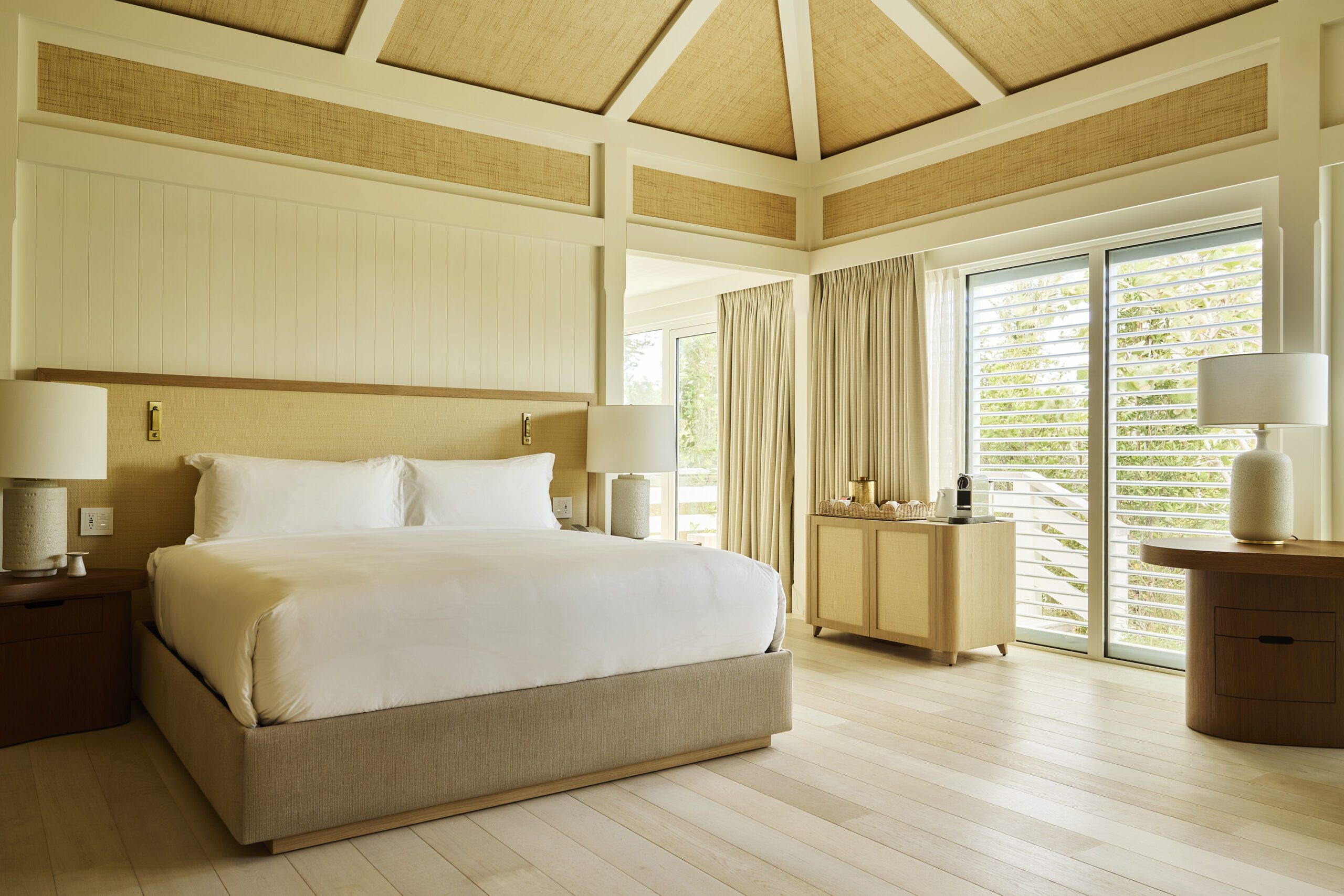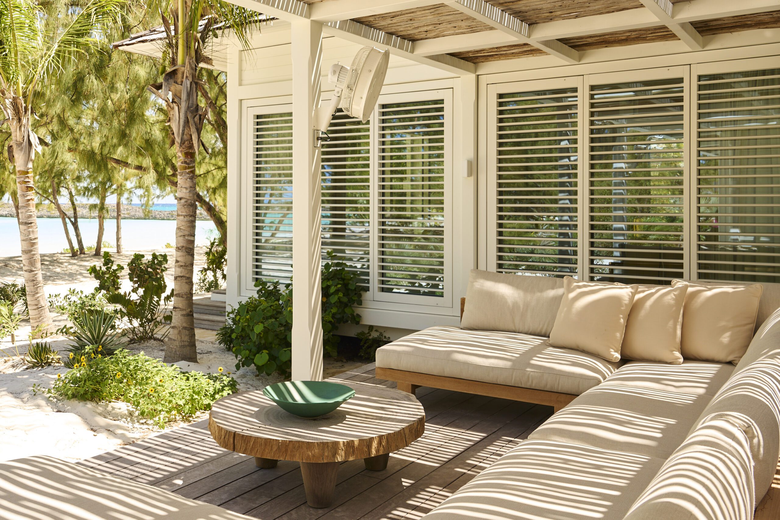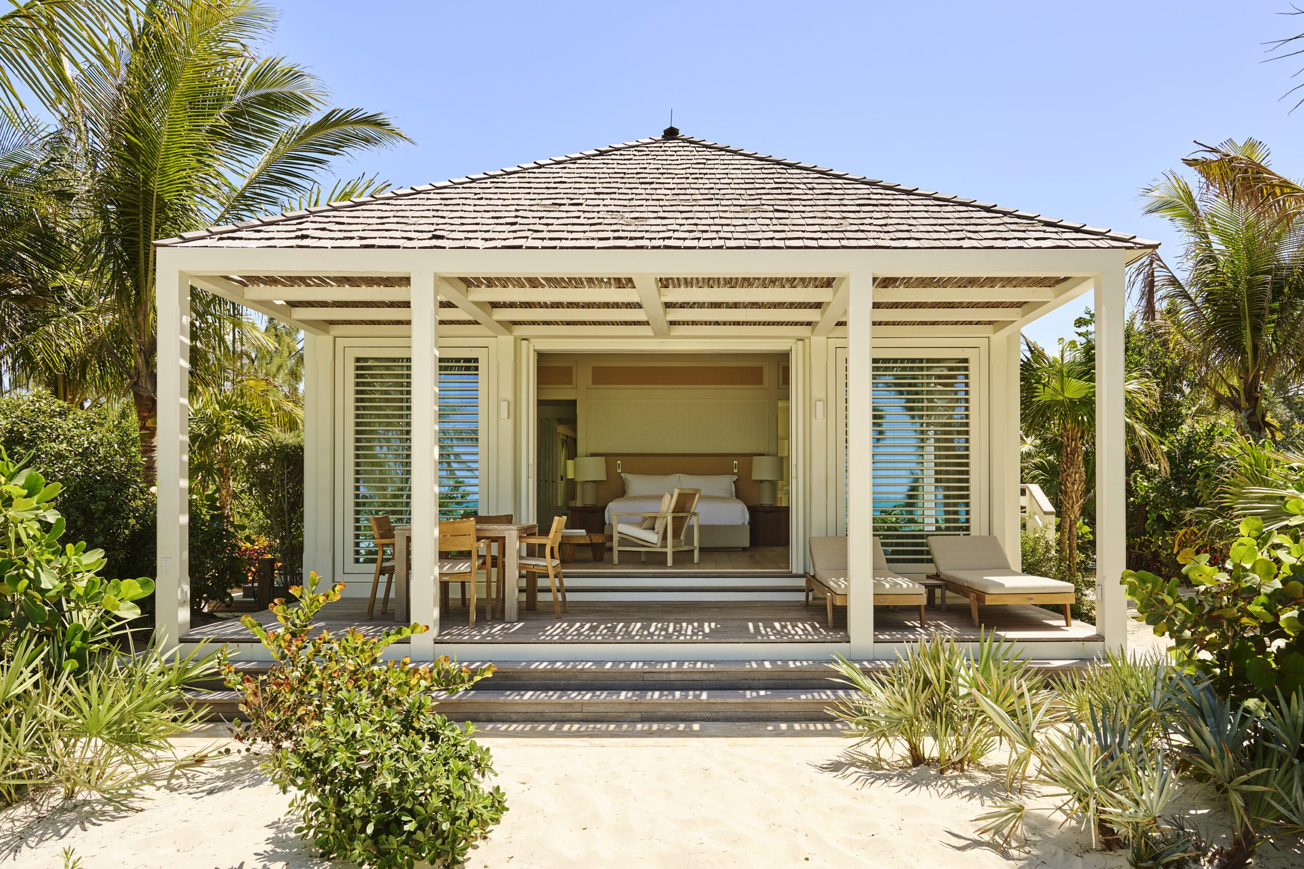 Located on the Whale Tail’s pristine shorelines, the One Bedroom Bungalow offers accommodations in a King guestroom with a sitting area overlooking the beach and sea. The Bungalow’s covered porch offers lounge chairs for two and a dining area for four guests.