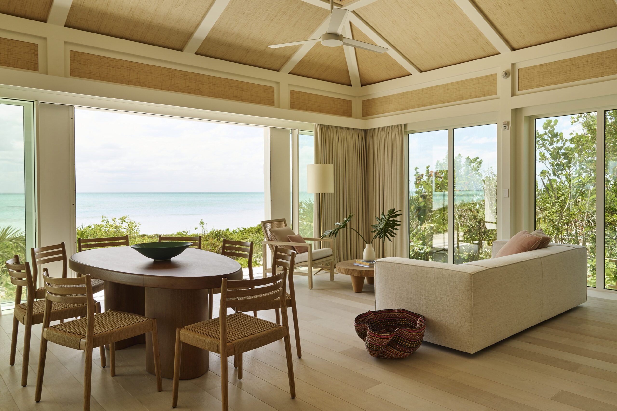 Located on the Whale Tail’s pristine shorelines, the One Bedroom Villa is composed of a Primary Bedroom Bungalow connected to a Living Pavilion, with features including an open- plan kitchen, dining space, and living area, all facing the ocean. Centered around a porch with direct views to the sea, dining and lounge space for up to ten guests makes this Villa ideal for entertaining, and additional accommodations may be reserved in the Bungalows just a short walk down the beach.